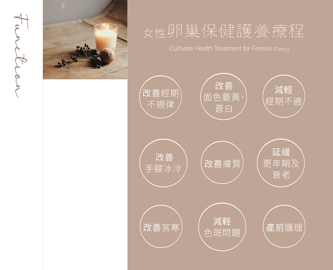 健康的卵巢是女性保持年青的關鍵,Megeve 以獨家的開穴手法和引流手法配合意大利的卵巢保養精油,瞬間疏通堵塞已久的淋巴,並將囤積於卵巢的毒素帶走,做到促進新陳代謝、舒解女性生理期不適、延緩更年期。療程後,肌膚會變得緊緻彈性,整個人回復氣色,充滿神采活力,煥然一新。